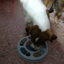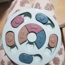 So my dog is a confirmed genius- just kidding but she solved this in less than a minute. I thought about getting a more complex puzzle but thought I’d try this one out first in case she wasn’t a genius. The only negative aspect of the product is that if your dog chews up toys she will probably chew up the puzzle pieces. So this is a puzzle I’d recommend using if you are home with your pet. I’ll look for another one to use when I am gone to keep her busy mind occupied.